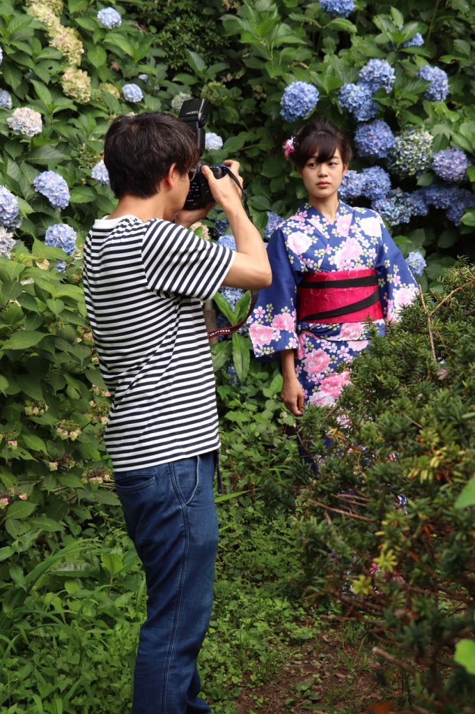 浴衣のモデルさん!アジサイ寺でロケ撮影してきました。