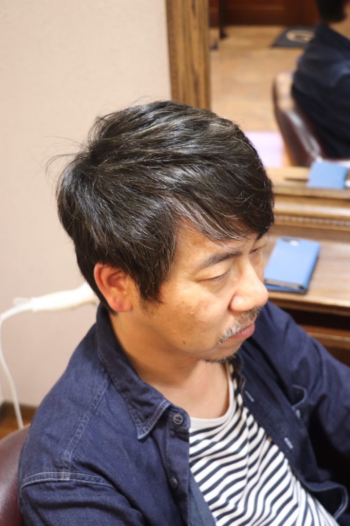 癒しとこだわりの美容室カームです。 先日、店長の髪をハーブで染めました。 色は藍【インディゴ】です。 ビフォー写真はコチラ 白髪は全体の40%くらい 藍を塗って15分置き、洗髪をいたします。 アフター写真はコチラ バチっと濃く染めてしまうと重たく... -