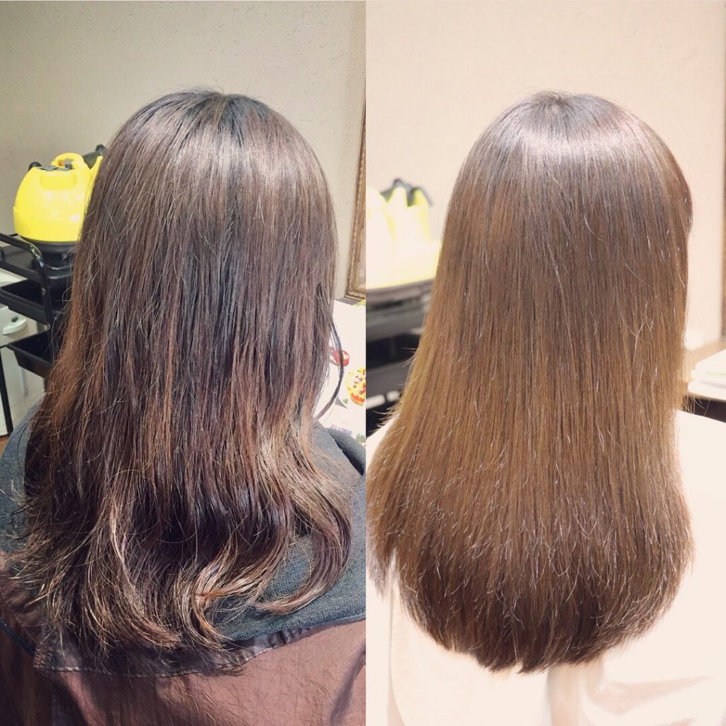 お店に来て整体をしてくださる整体師さんがご来店! 普段は結うことが多いのですが、髪を下ろした時に艶が欲しいとのことで、Wトリートメントしちゃいました! 艶だけでなく、髪にハリコシも出ました!ちなみにお客様は50代です。驚きの輝きでした!! -