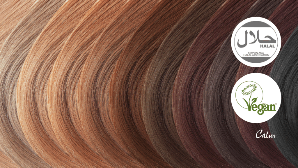 Calmは、Vegan,HALAL認証取得のカラー剤を使っています。