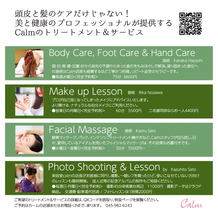 頭皮と髪のケアだけじゃない 美と健康のプロフェッショナルが提供するCalmのトリートメント&サービス